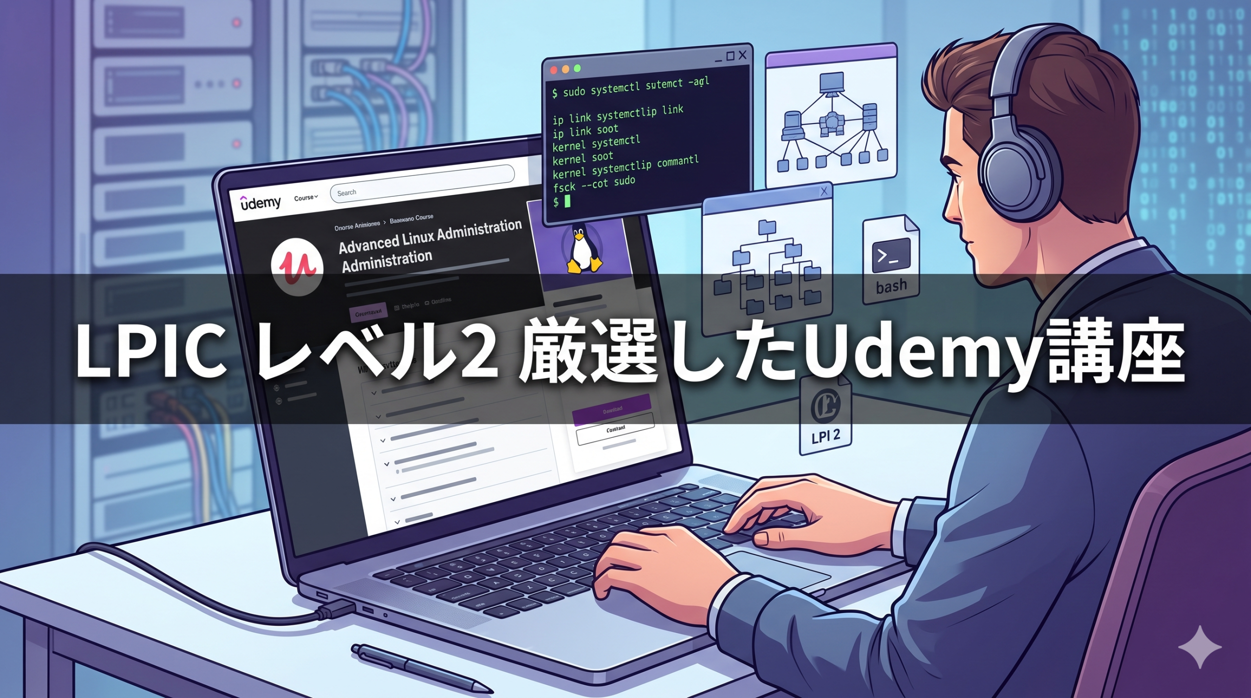 Udemyには201-450に特化した模擬試験講座があり、本番形式での演習が可能。動画で手順を追った後、自分の環境で必ず実機を触るのがLPICで得点を伸ばすコツです。