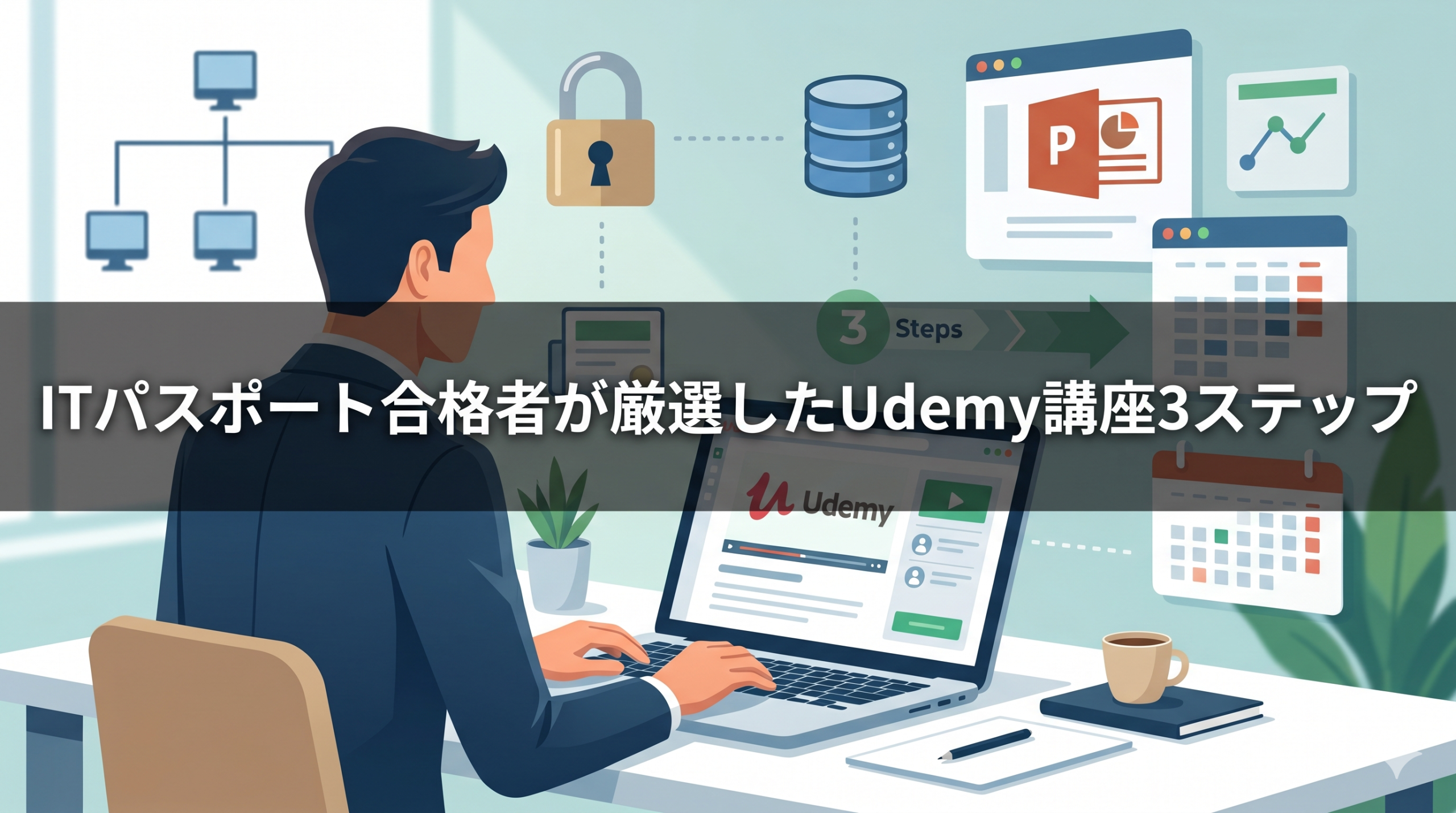 【2026年版】ITパスポート合格者が厳選したUdemy講座3ステップ|独学最短合格ロードマップ