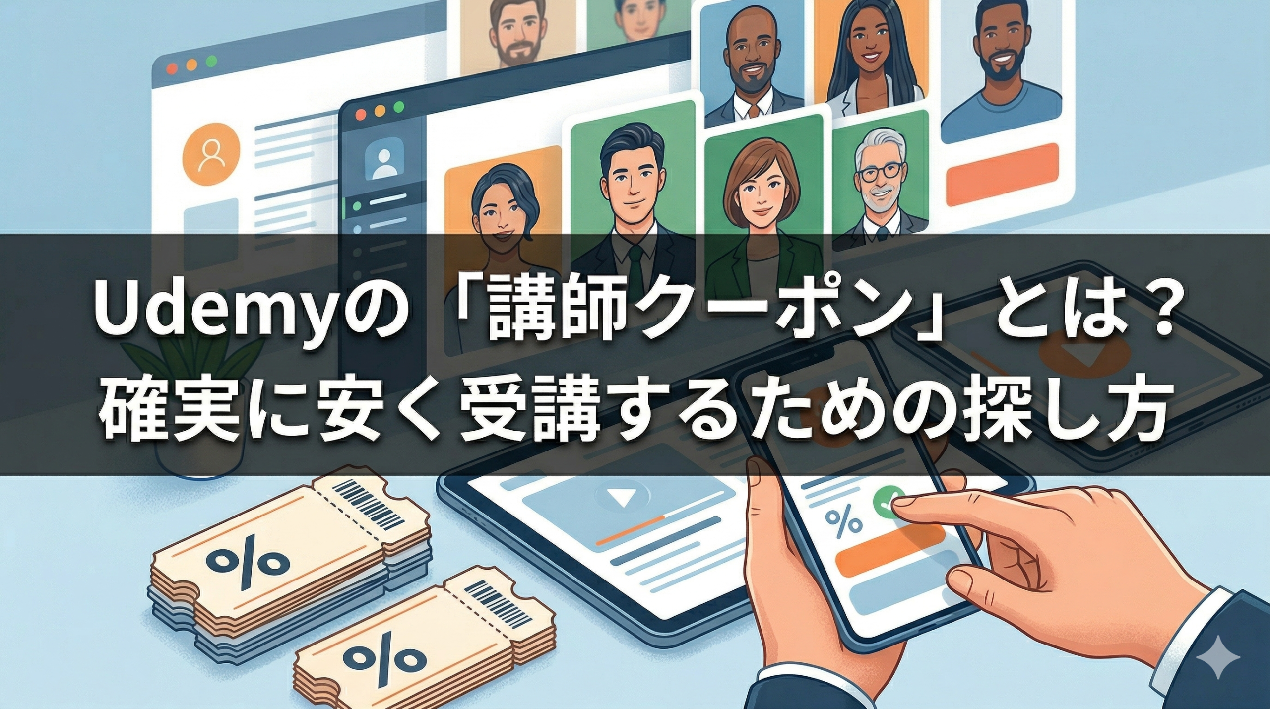 実は、セール期間外であってもお得に講座を購入できる確実な方法があります。それが「Udemyの講師クーポン」を活用することです。本記事では、講師クーポンが存在する理由と、効率よく探せるまとめページへの誘導をご紹介します。