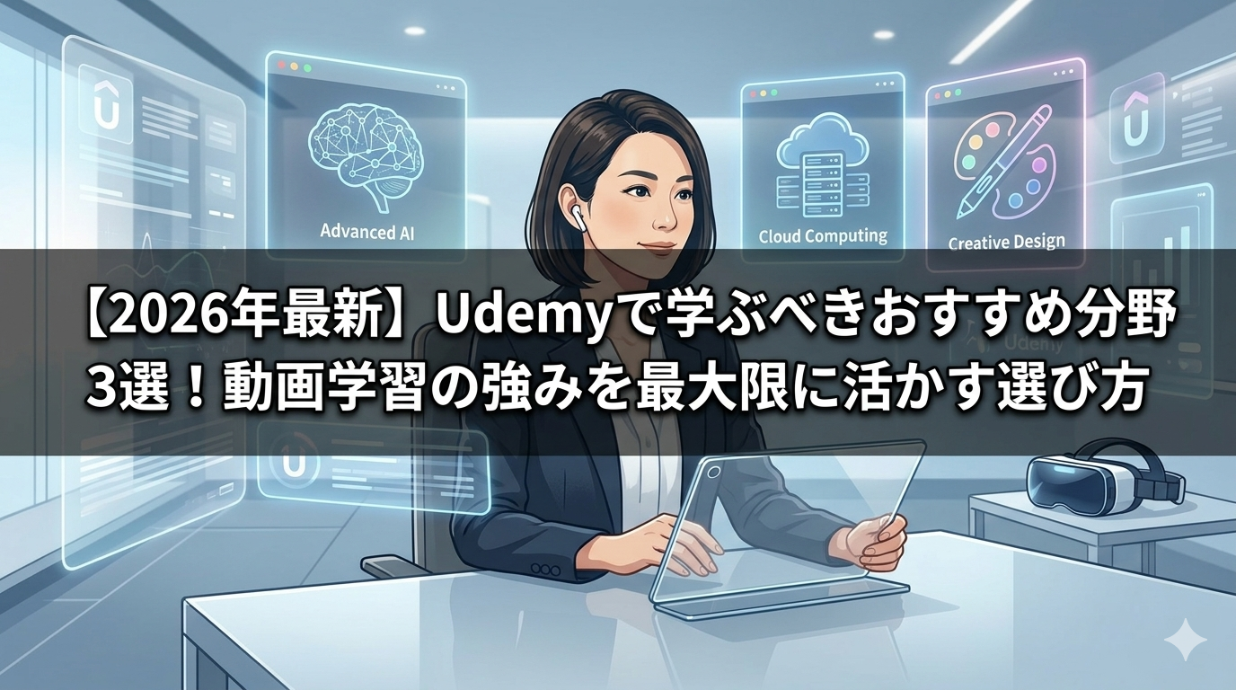 結論から言うと、Udemyで学ぶべきは「テキスト(本)では理解しづらい複雑な内容を、視覚的に学べる分野」です。本記事では、動画学習ならではのメリットと、今の時代に最も投資対効果(ROI)が高いおすすめの学習分野を3つ厳選して解説します。
