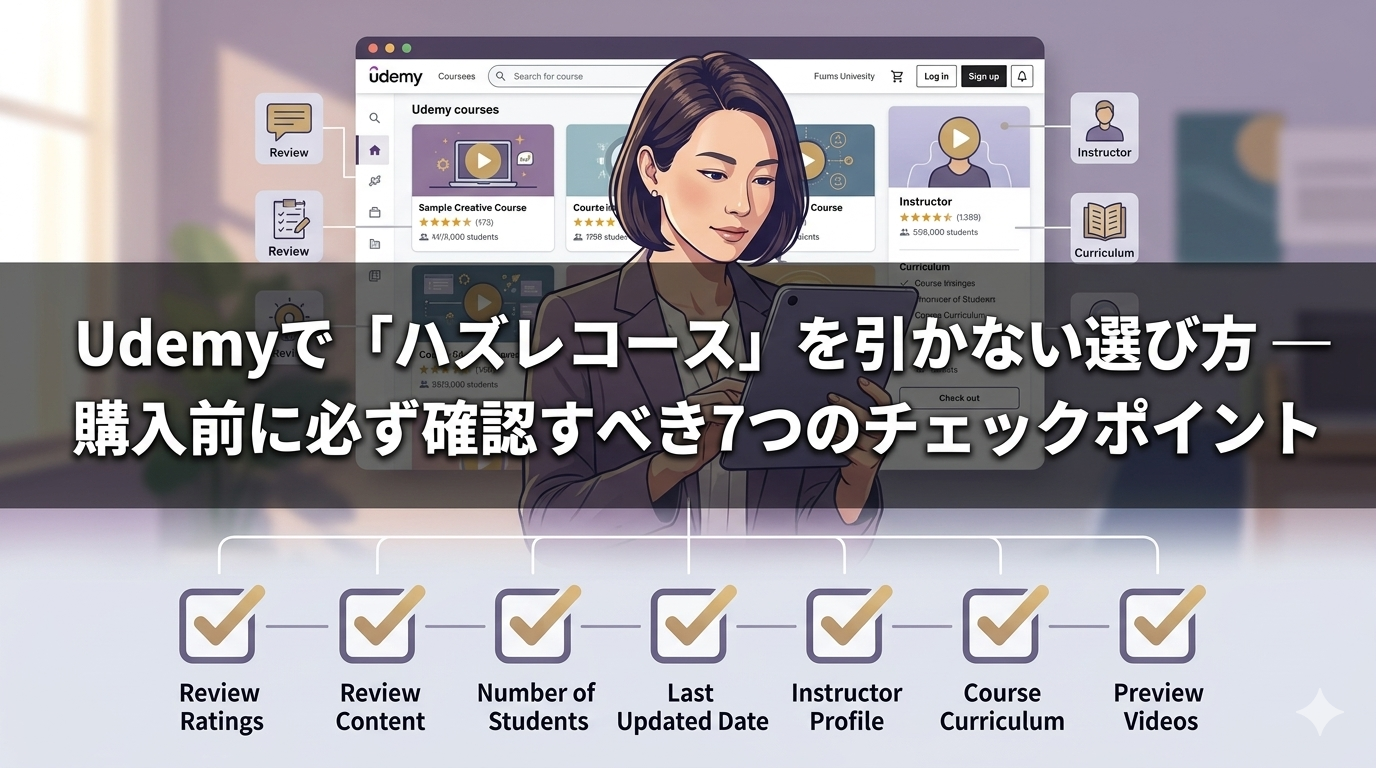 この記事では、Udemyのコース選びで必ず確認すべき7つのチェックポイントを解説します。