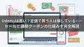 良いコースを選んだなら、次はできるだけ安く購入することを考えましょう。Udemyは定価10,000〜30,000円のコースでも、講師クーポンを使えばセール価格と同等の1,500〜2,000円程度で受講できます。
